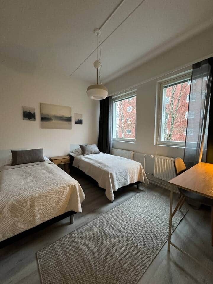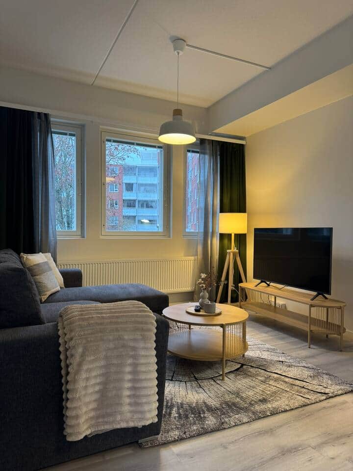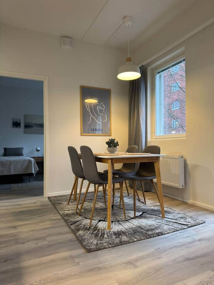 A spacious and newly completed 50m2 two-room apartment in Tourula, Jyväskylä is equipped to accommodate guests for both long and short stays. The apartment is fully equipped and includes a washing machine, iron and free parking.
