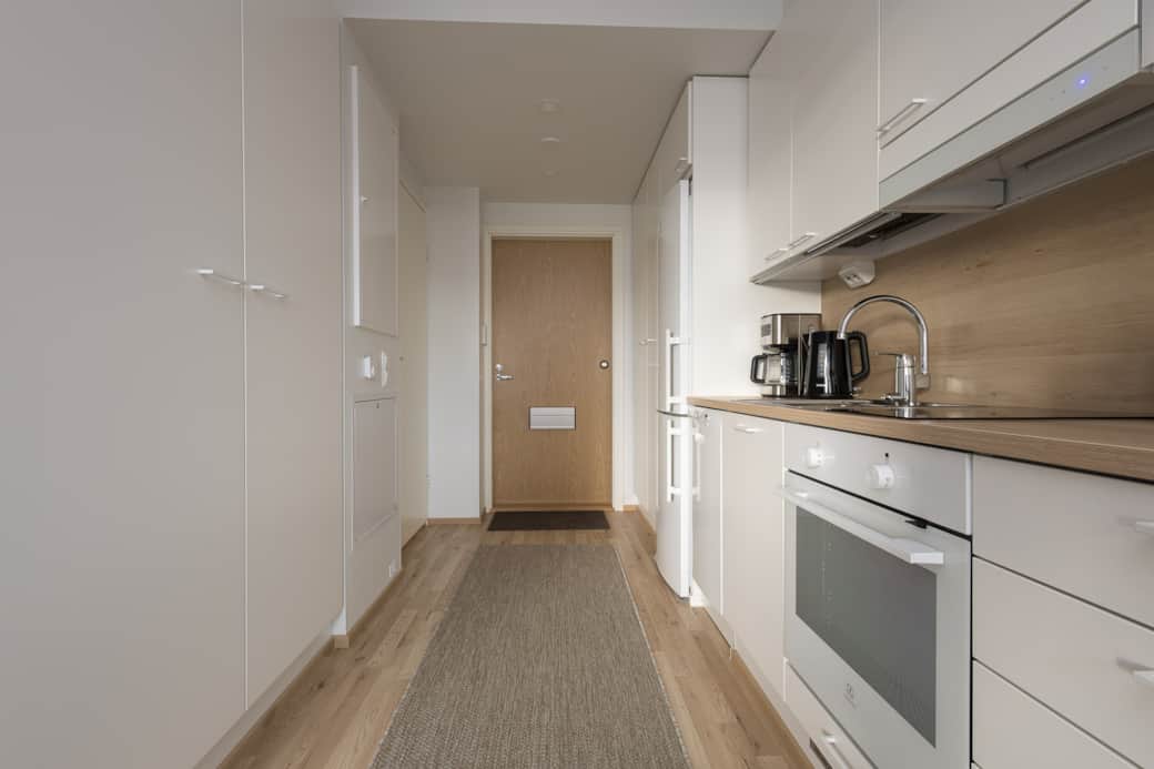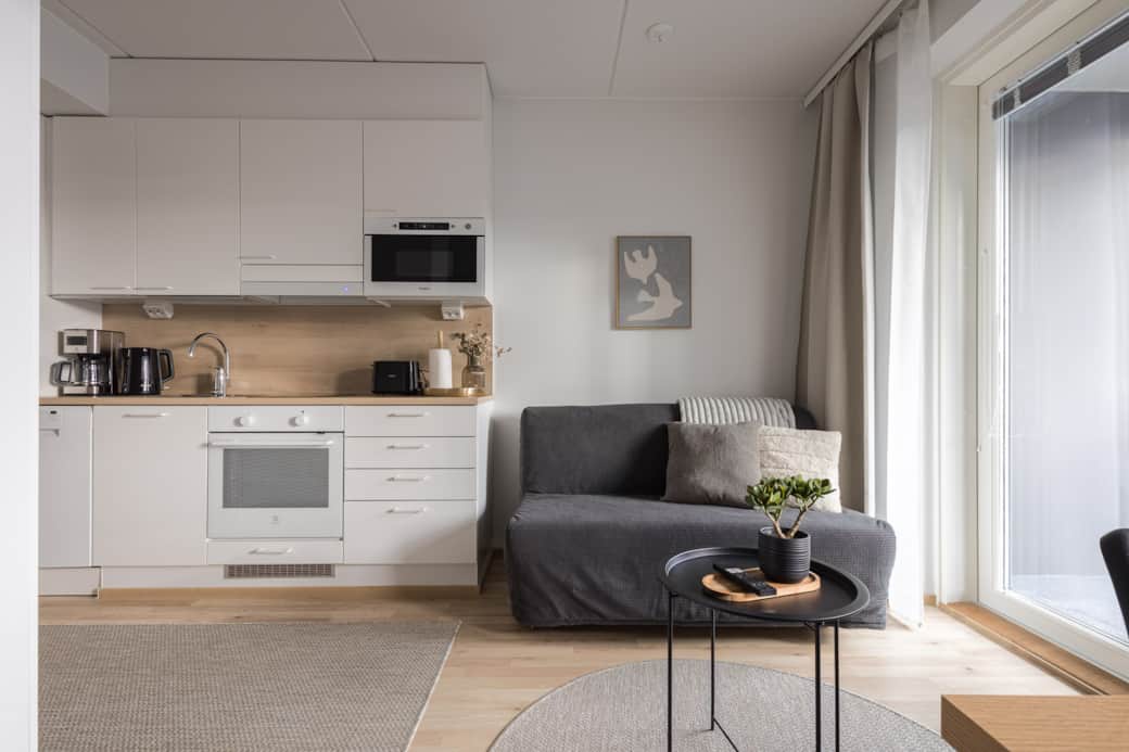 Pramea Apartments Asemankulma offers a cozy stay in the heart of Kuopio, just steps from the train and bus stations. Located on the 5th floor of a building with an elevator, the apartment features a glazed balcony, free parking nearby, and modern furnishings. Enjoy a comfortable double bed, a sofa bed for two, and amenities like air conditioning, heating, Wi-Fi, and a fully equipped kitchen. Perfect for a relaxing city getaway!