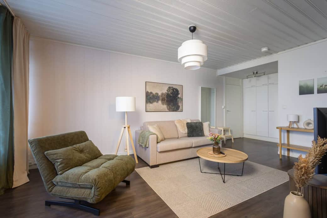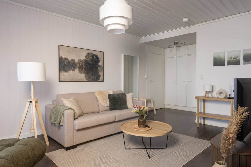 Tyylikkäästi sisustettu kaksio keskeisellä paikalla. Valoisa makuuhuone parisängyllä, olohuone kahdella vuodesohvalla, täysin varustettu keittiö ja moderni kylpyhuone. Asuntoon majoittuu mukavasti jopa 5 vierasta.