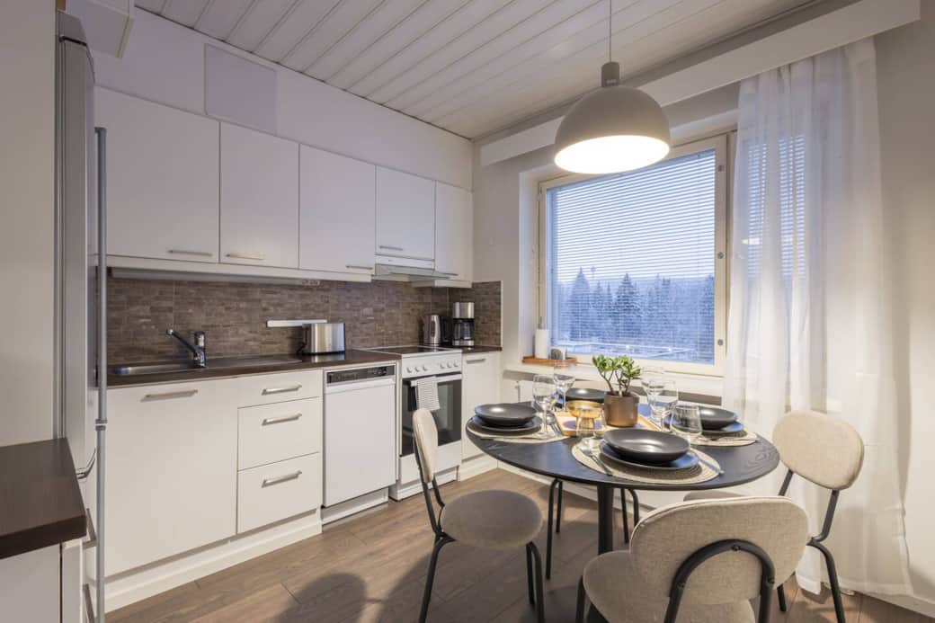 Kahvinkeitin, Keittiövälineet, Astianpesukone, Keittiön liesi, Keittokomero, Mikroaaltouuni, Uuni, Jääkaappi, Leivänpaahdin, Imuri
